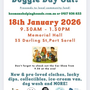 Community Doggie Day Out Locals Recycle Fashion Boutique, Hoomans Helping Hounds, is hosting a community fundraiser in Port Sorell (the same time as the... 18 Jan 9:30 am - 1:30 pm