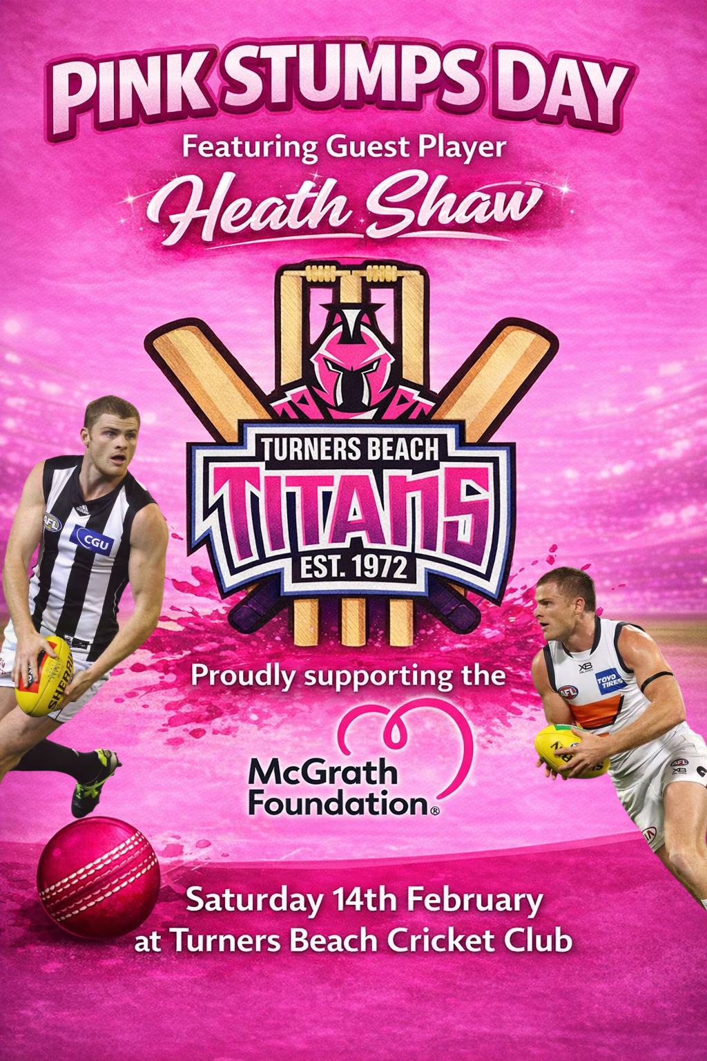 The Turners Beach Cricket Club will be hosting their annual pink stumps day match featuring former Collingwood premiership player Heath Shaw who will be gearing up in our pink kit on the 14th February from 12pm.